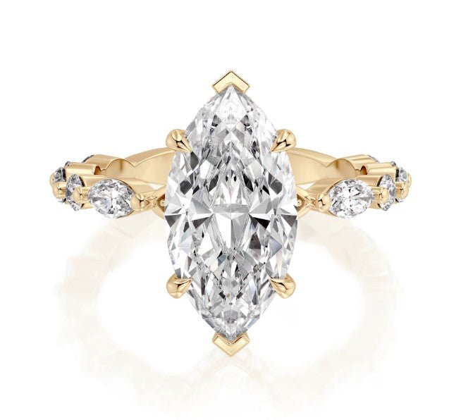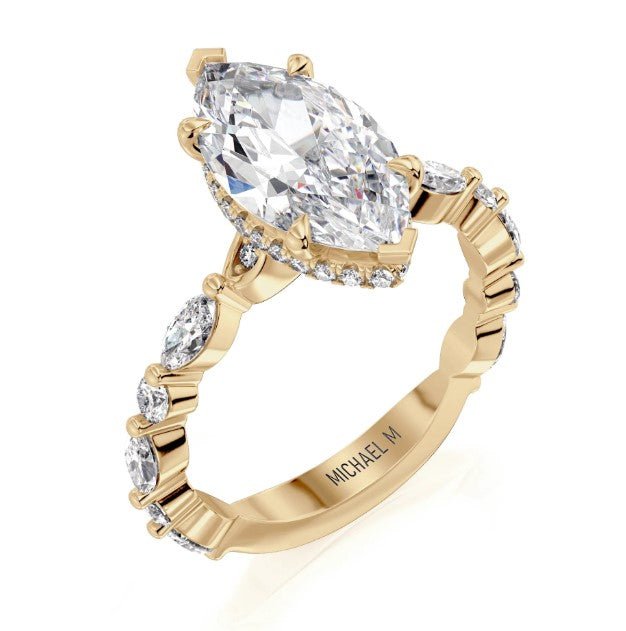 Michael M Round and Marquise Diamond Hidden Halo Semi-Mount Engagement Ring in 18K Yellow Gold (0.65ctw)