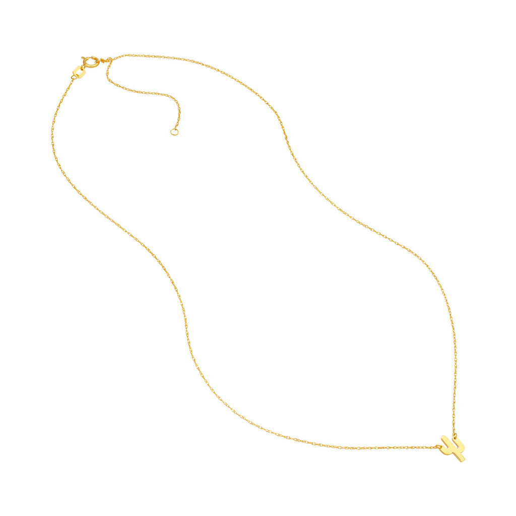 Mini Cactus Pendant Necklace in 14K Yellow Gold