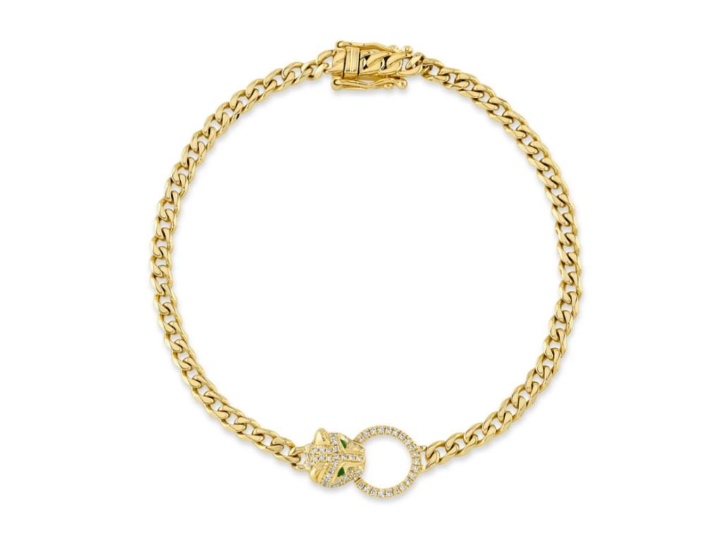 Panther Link Bracelet with Round Diamond and Emerald in 14K Yellow Gold (0.19ctw)