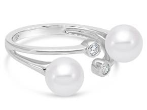 Pearl and Diamond Wrap Ring in 18K White Gold (0.12ctw)