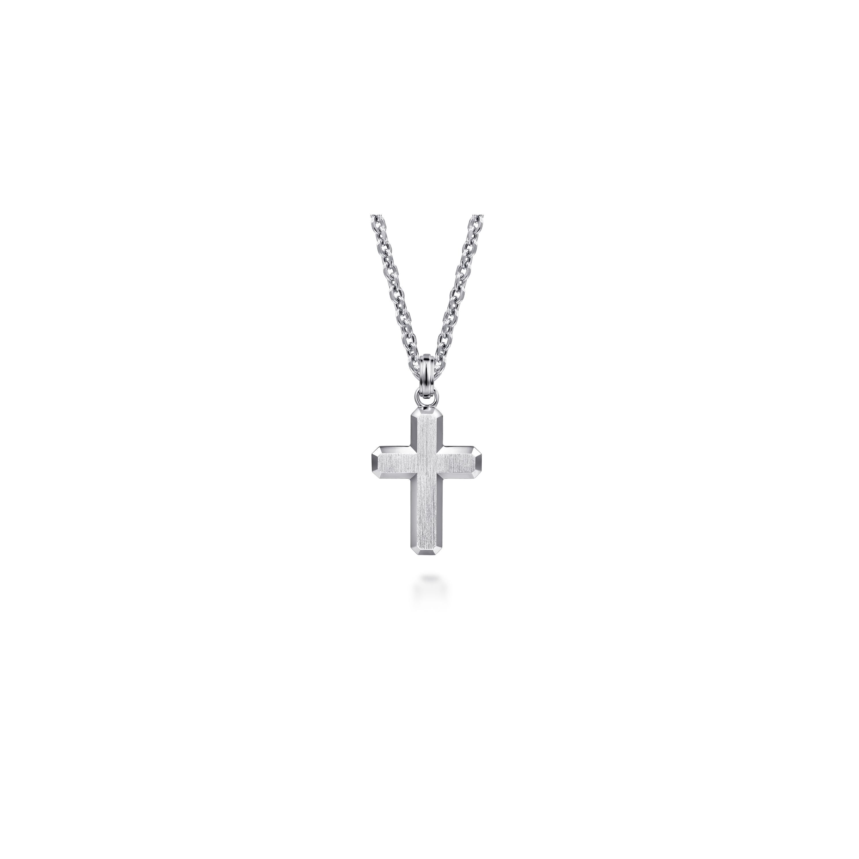 Satin Brush Cross Pendant in Sterling Silver