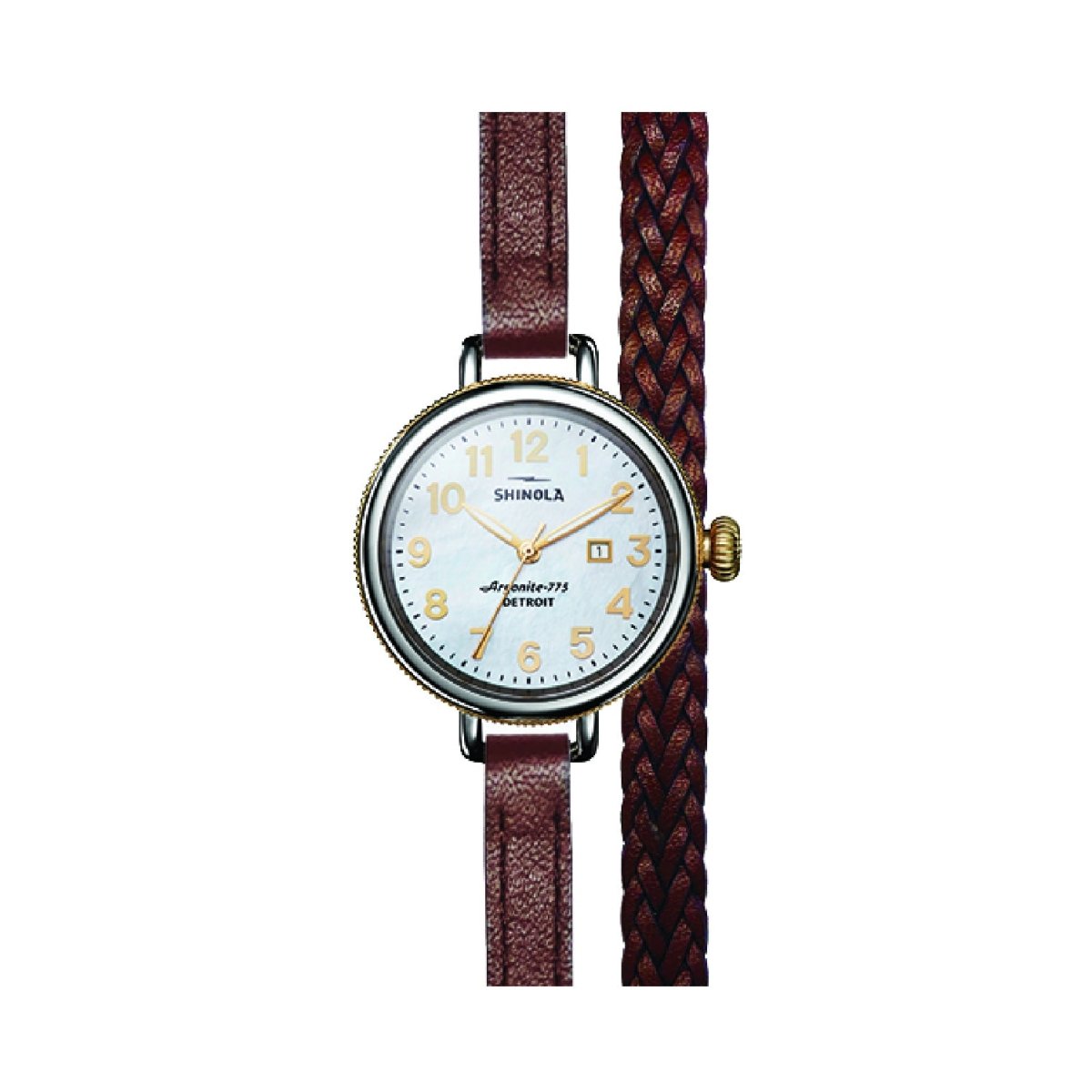 Shinola 34mm Birdy White Mother of Pearl Dial Whiskey Brown Strap Watch in Stainless Steel