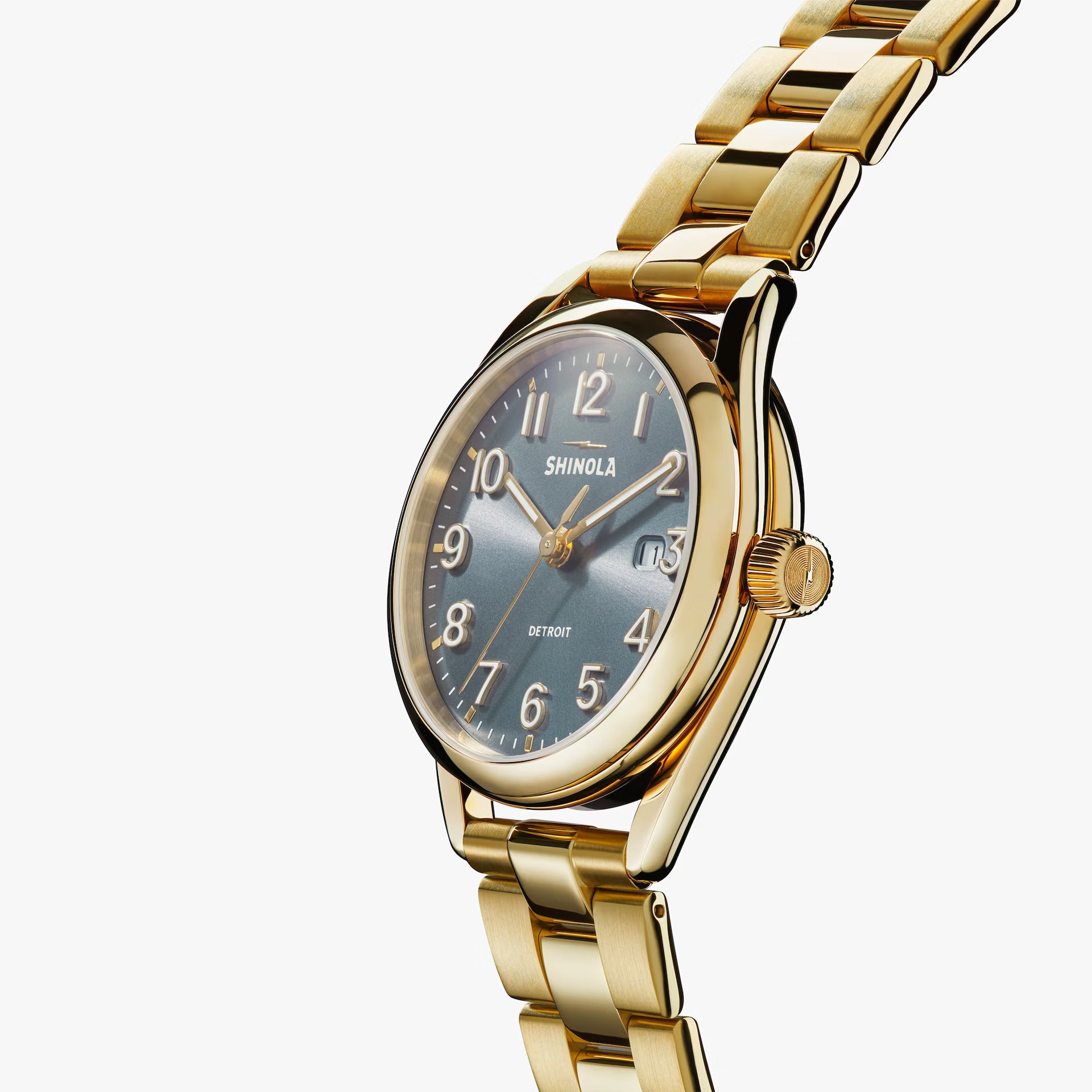 Shinola 38mm Derby 3 Hand Dark Gray Yellow Stainless Steel Watch