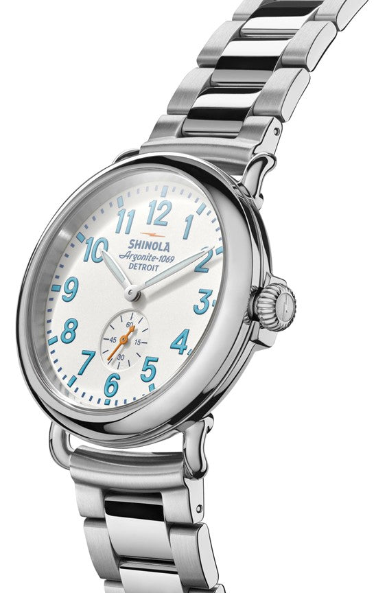 Shinola 41mm Ivory Runwell Sub 2nd Teal Numbers Watch in Stainless Steel