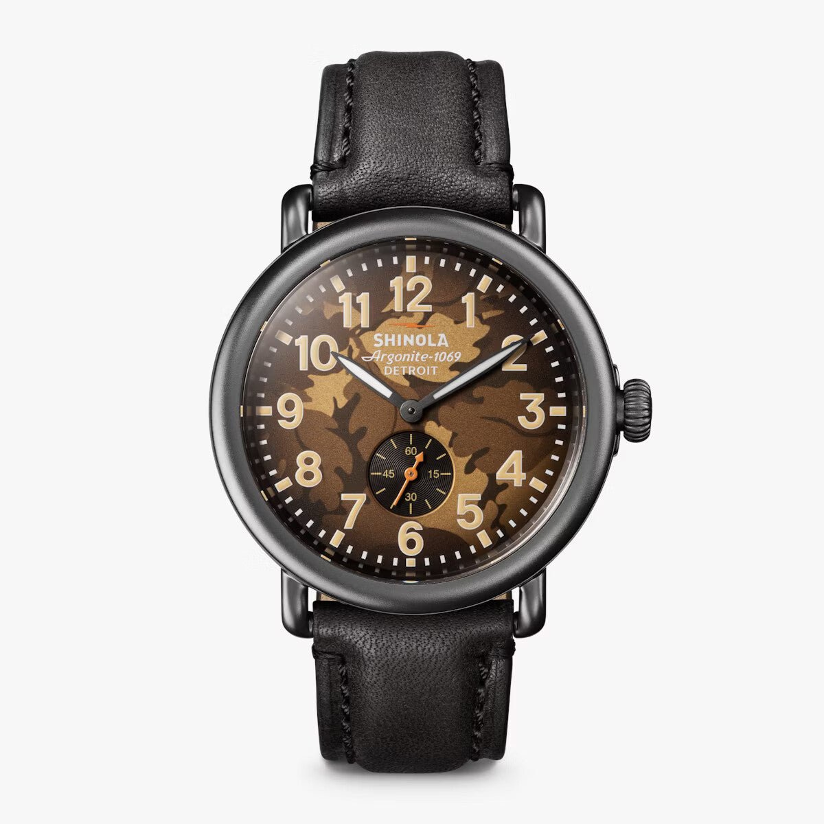 Shinola 41mm Runwell Sub Second Brown Camo Face Black Leather Strap Watch in Stainless Steel