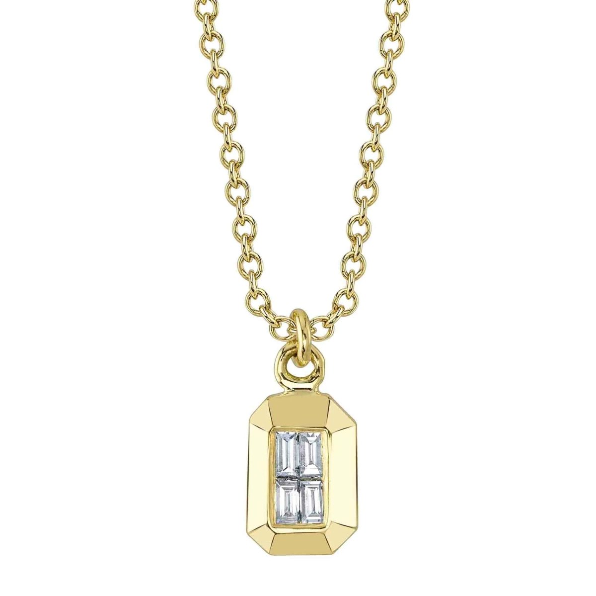 SHY Creation Baguette Geometric Cut Diamond Pendant Necklace in 14K Yellow Gold (0.07ctw)