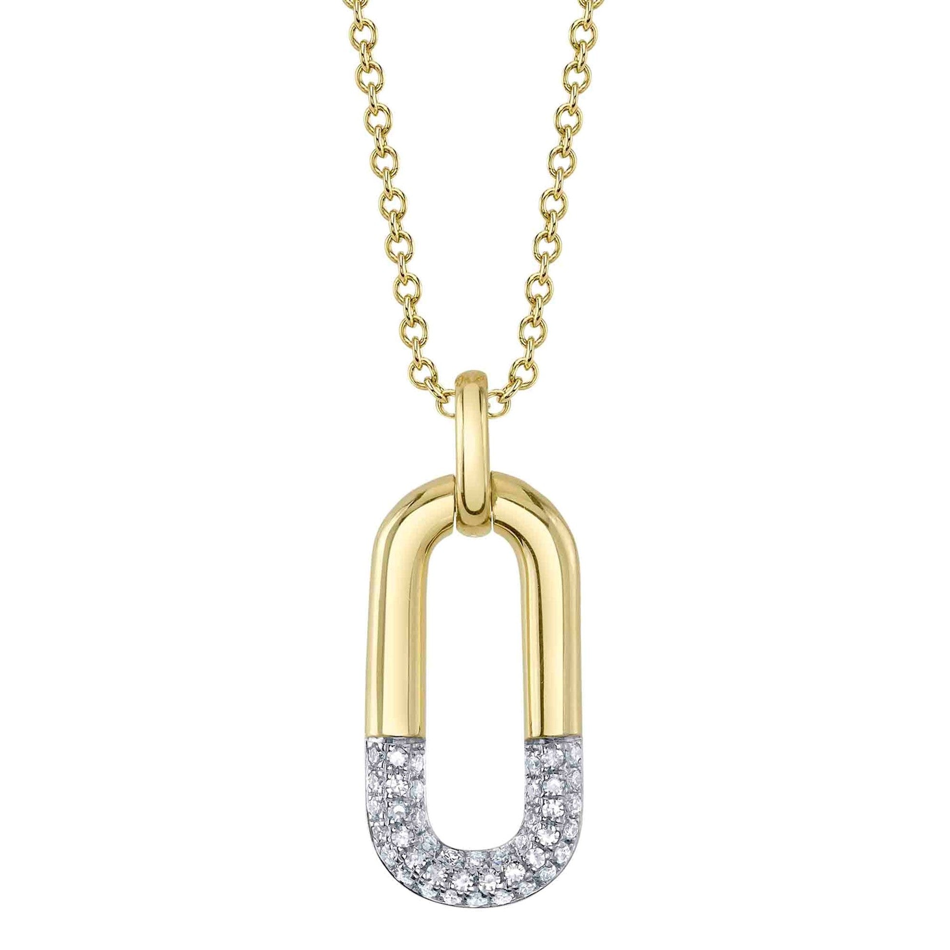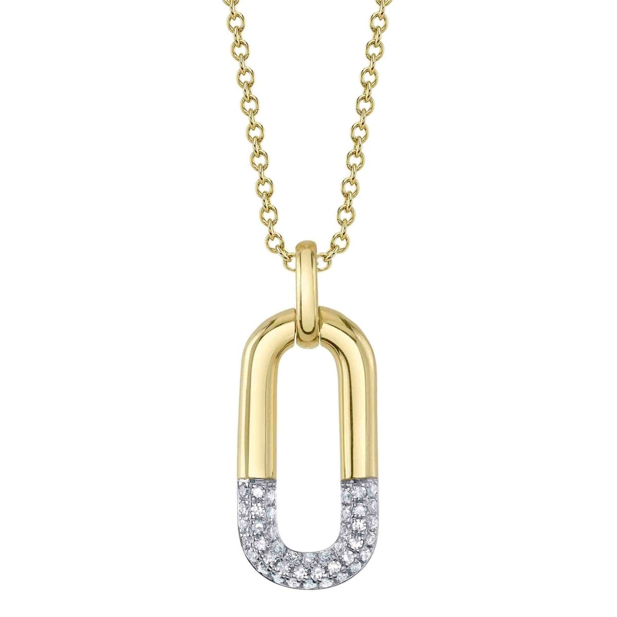 SHY Creation Diamond Link Half Pave Pendant Necklace in 14K Yellow Gold (0.10ctw)