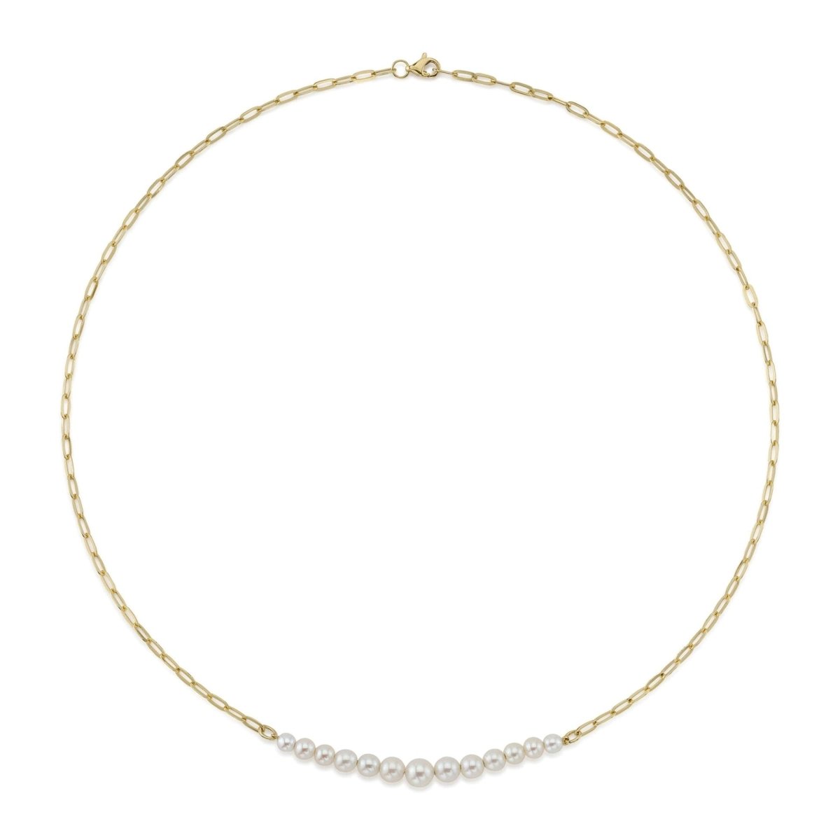 SHY Creation Graduated Pearl Smile Paperclip Link Pendant in 14K Yellow Gold