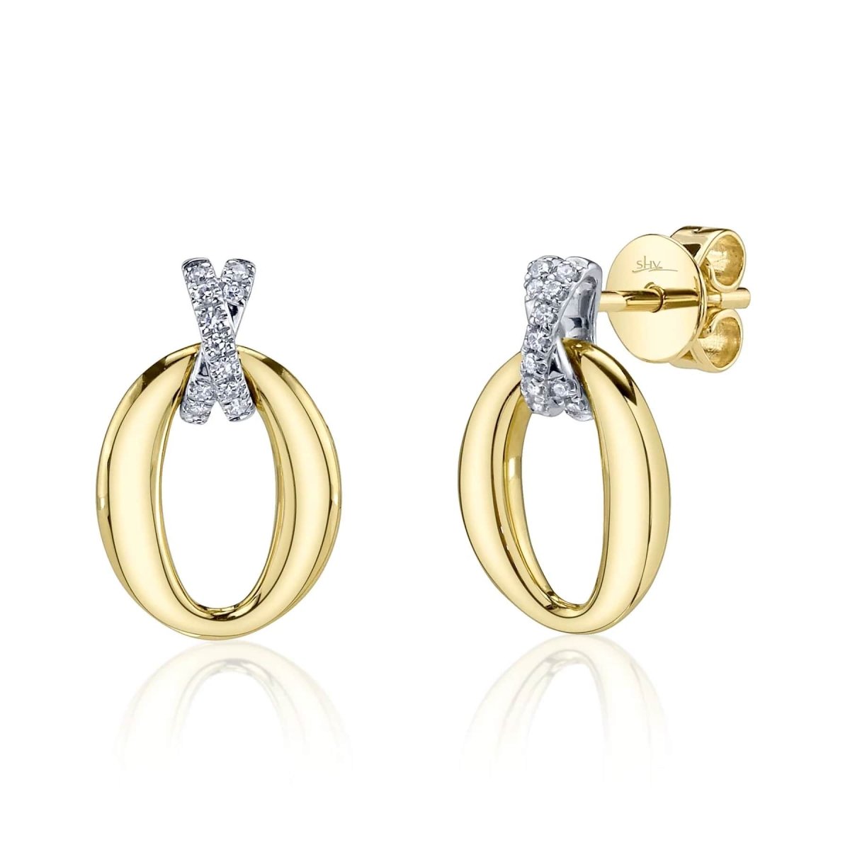 SHY Creation Oval Diamond Pave Accent Earrings in 14K Yellow and White Gold (0.07ctw)