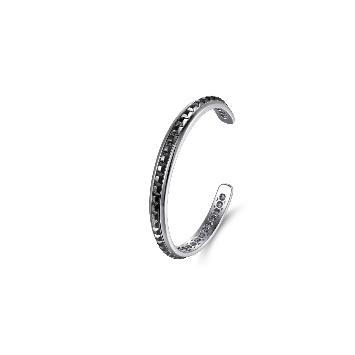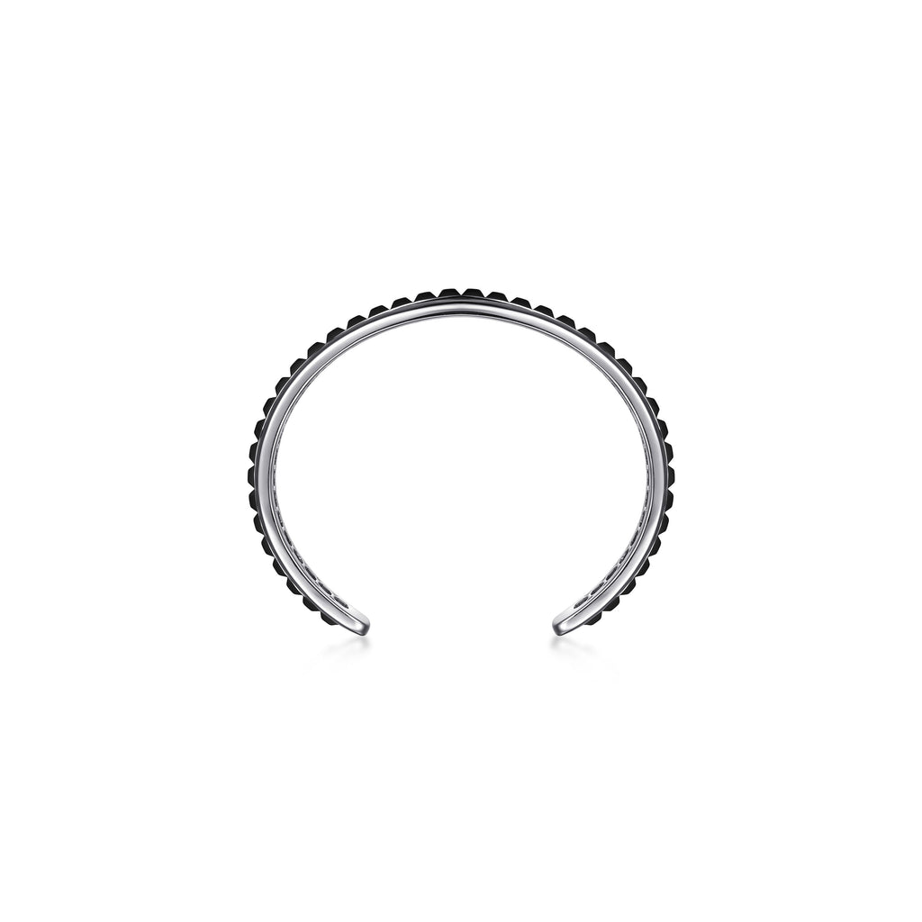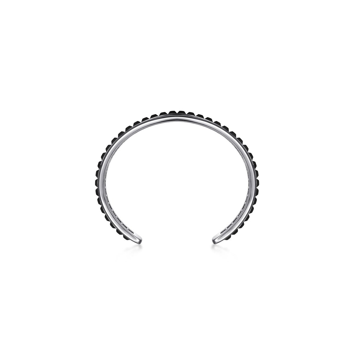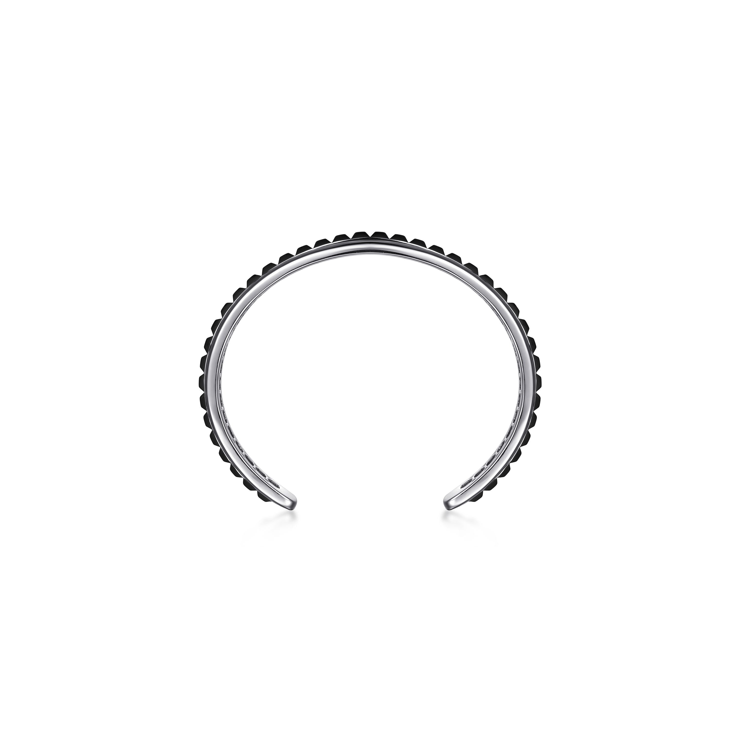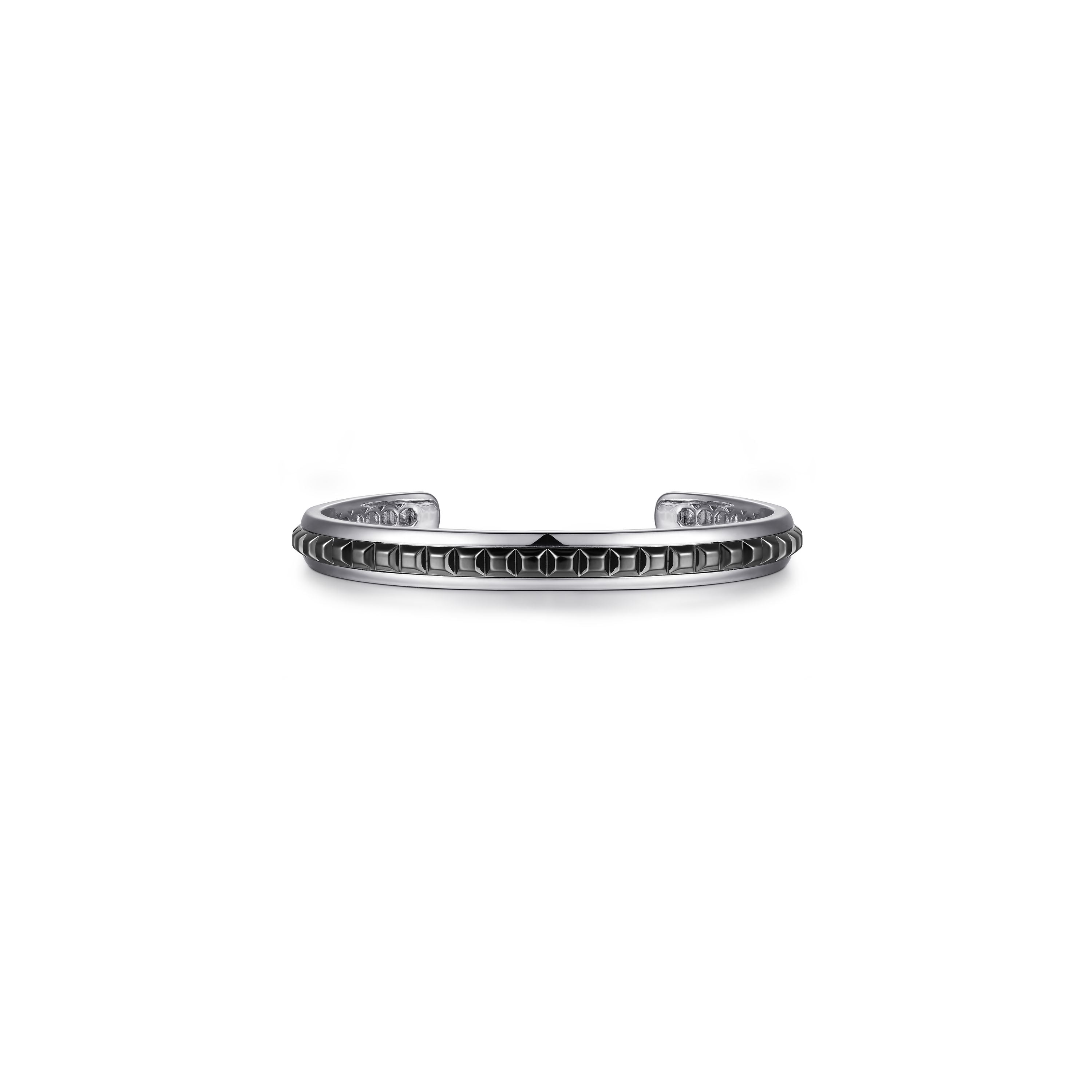 Sterling Silver Black Grommet Inlay Cuff Men's Bangle Bracelet in Silver