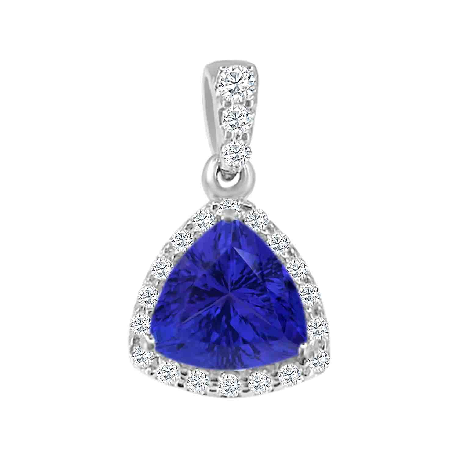 Trillion Tanzanite and Diamond Halo Pendant Necklace in 14K White Gold (1.19ctw)