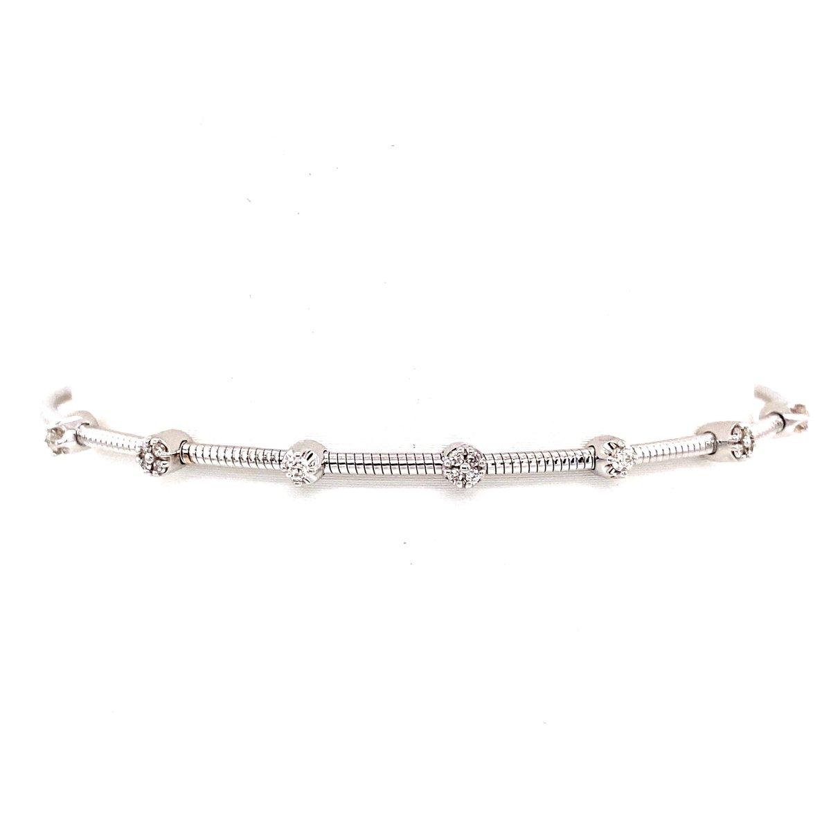 Wire Flex Bangle Bracelet with 7 Diamond Stations in 14K White Gold (0.17ctw)